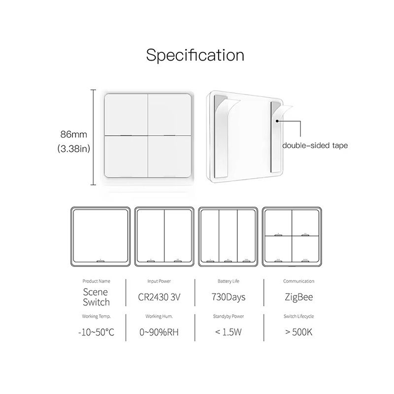 12 Scene 4 Gang Tuya Smart Home ZigBee Scene Switch Wireless Wall Button Scene With Stickers