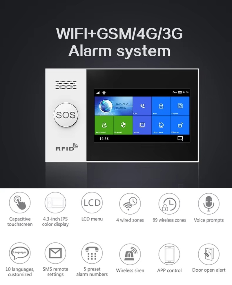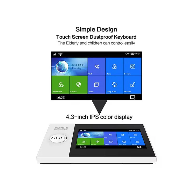 4.5 Inch Tuya Smart Home Wireless Secure Alarm System with Wifi Gsm 4G Siren Rechargeable Battery Support Many Language