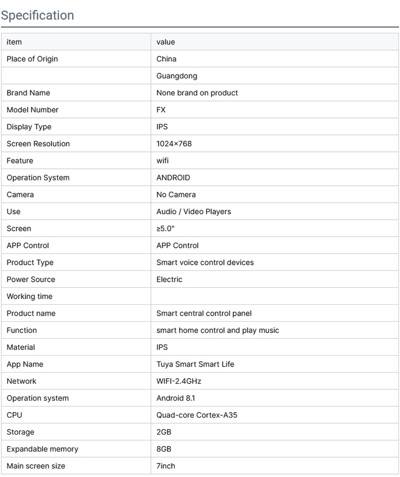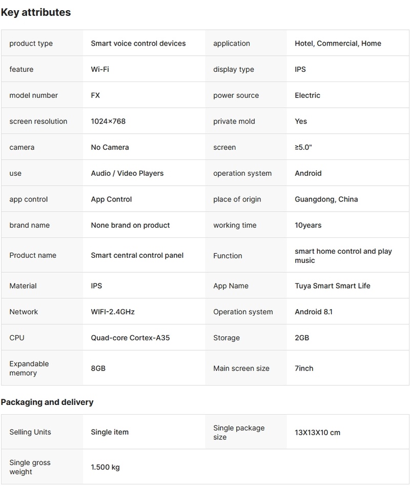 7 Inch Smart Home Central Control Panel Android Operation System Touch Screen WiFi Music Audio Playback Electric Power