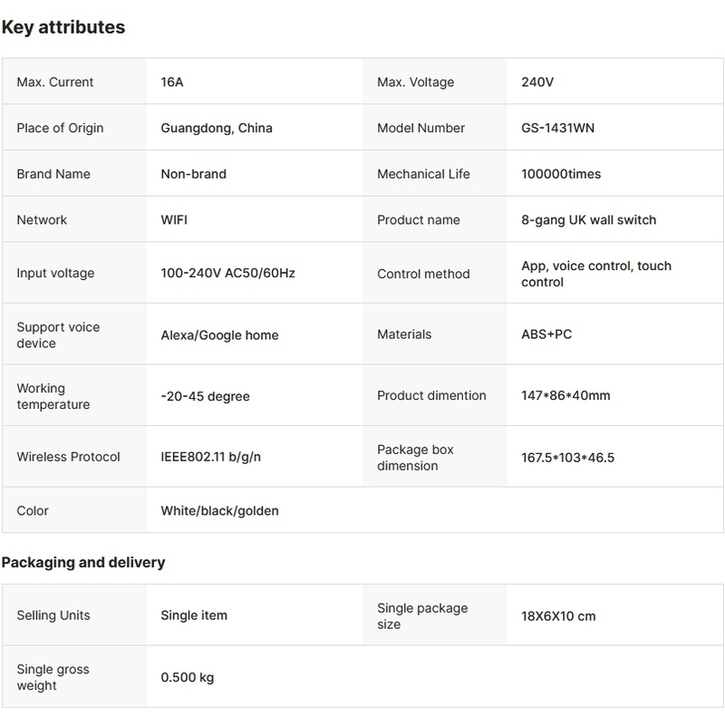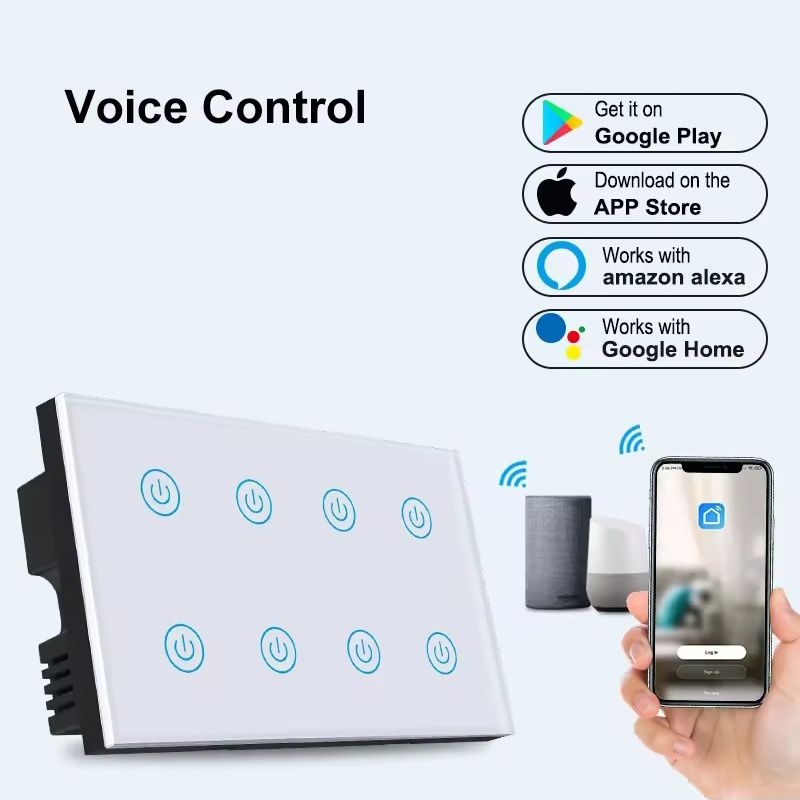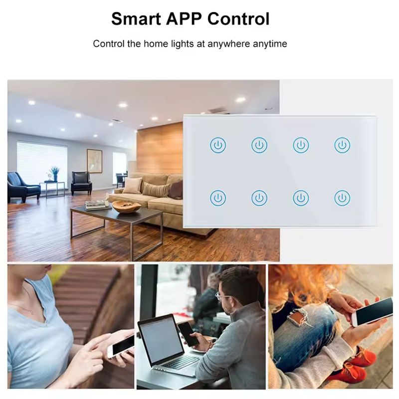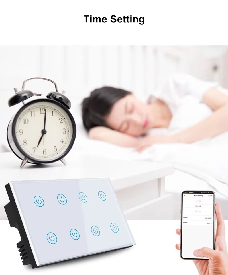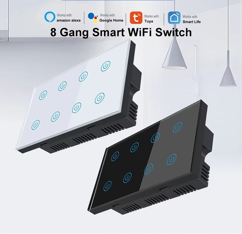 8 Gangs UK Standard Touch Wall Switch on OFF Timing Control for Smart Home Support Alexa Google Home Voice Control