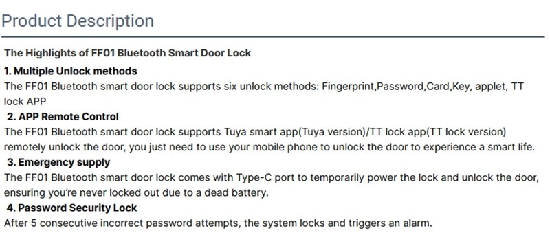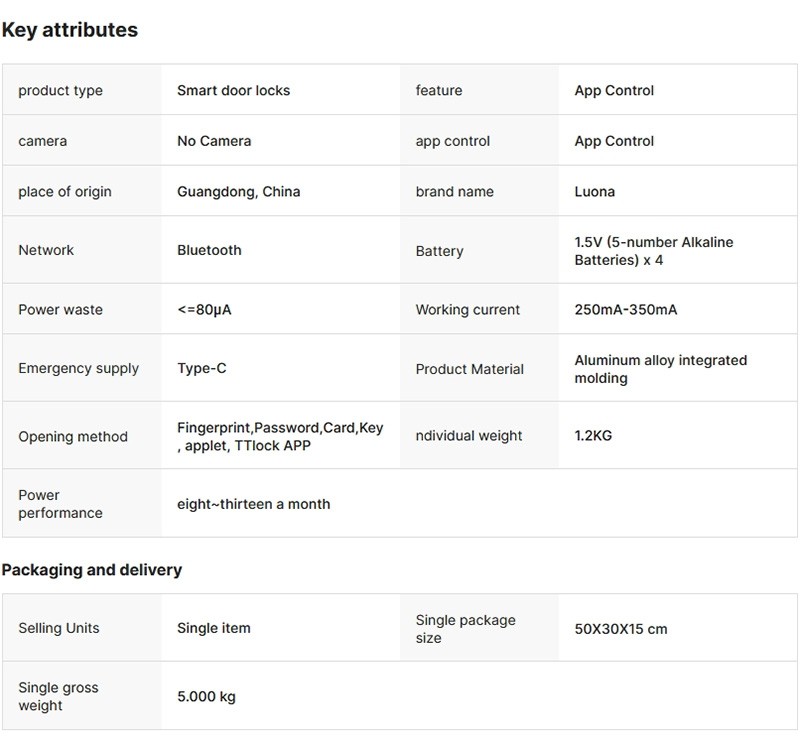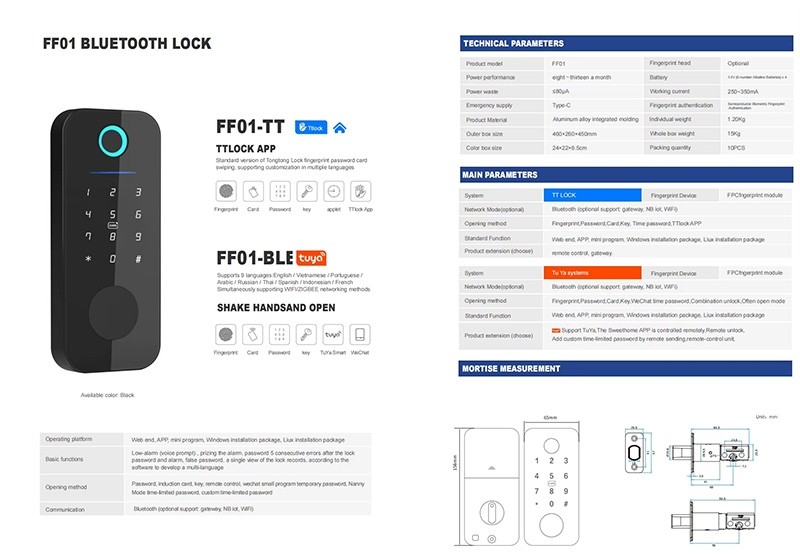 Aluminum Alloy Door Lock TT Lock APP Remote Control Fingerprint Recognition Password Unlock Smart Lock Smart Home