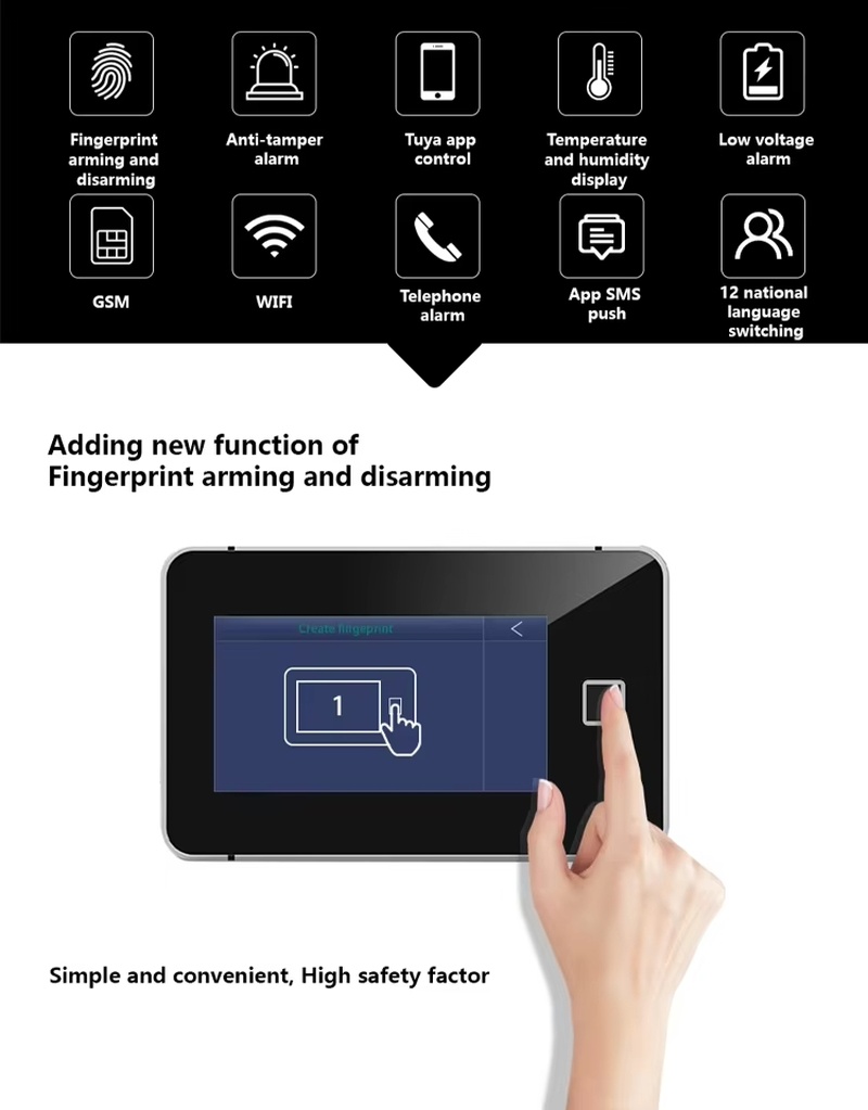 Full Touch LCD Screen 4.5 Inch Smart Secure Alarm System 12 Languages Wireless Smart Secure Alarm System Via Smartphone