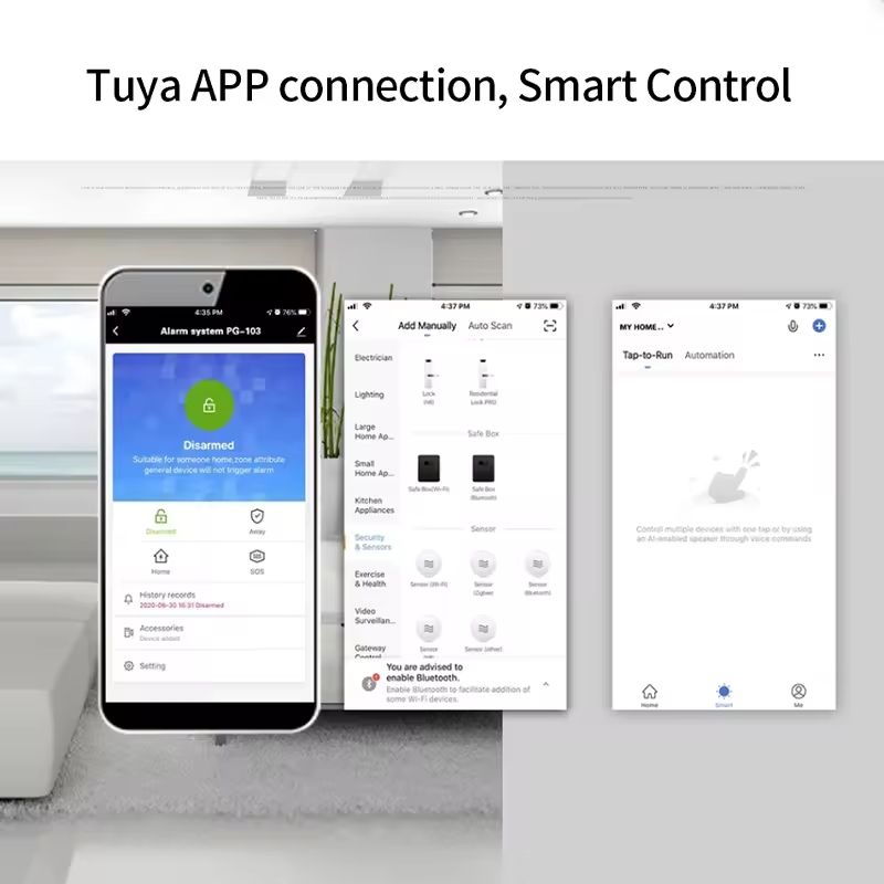 Control with App (Tuya App): Use your phone to control the smart devices from anywhere.