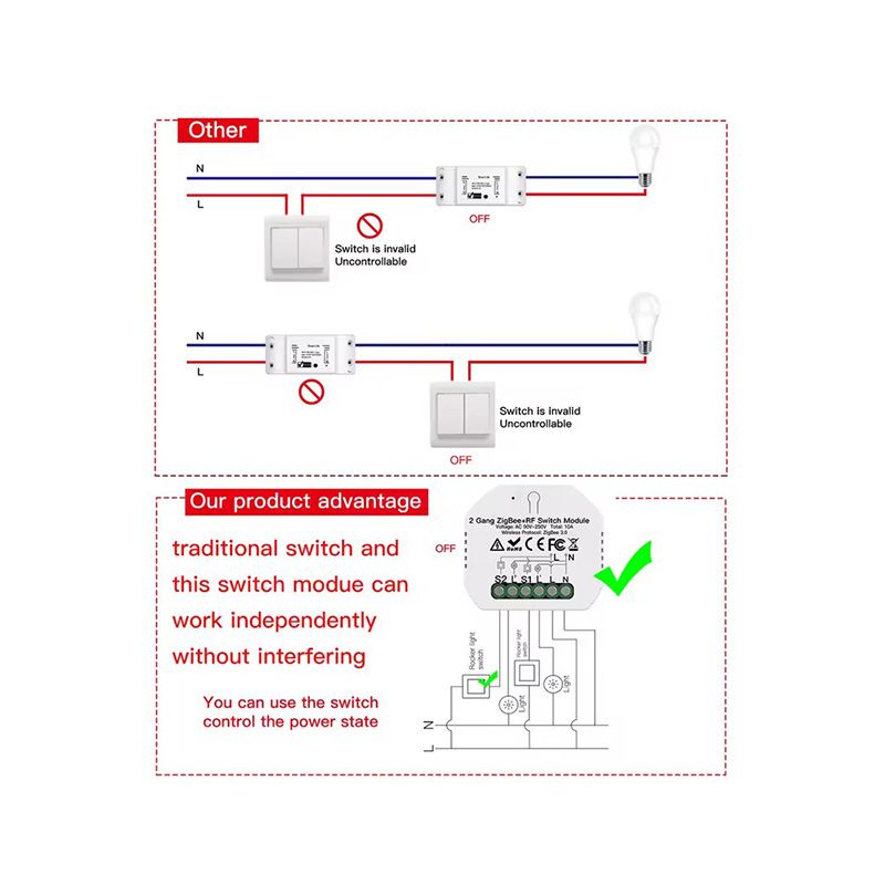 2 Gang Wireless Remote Control Smart Switch with google Home Alexa Voice Control Function