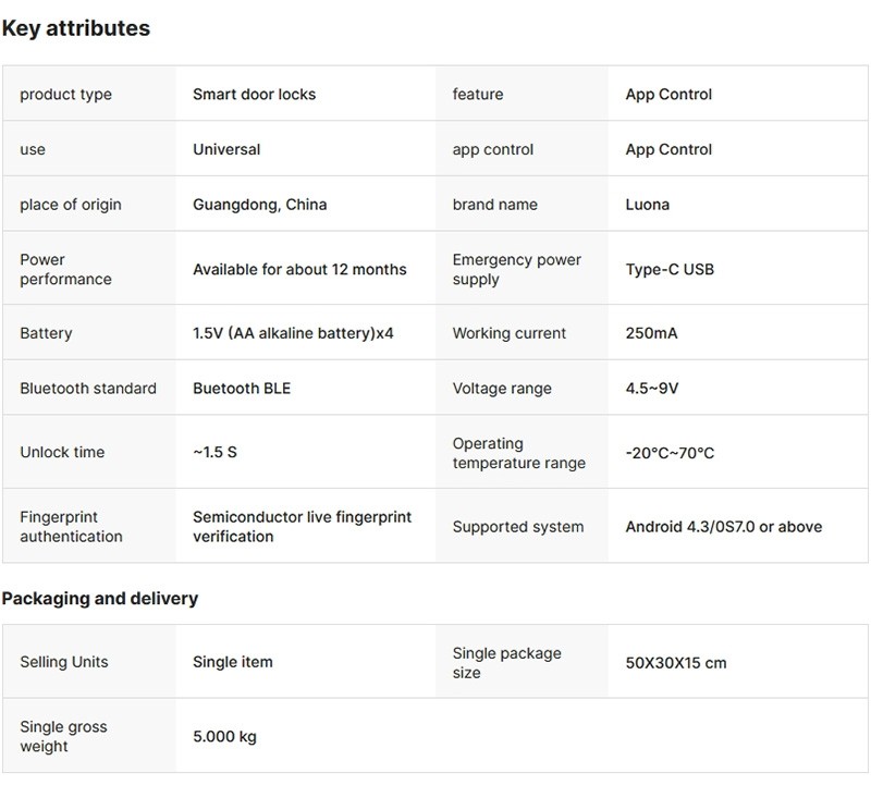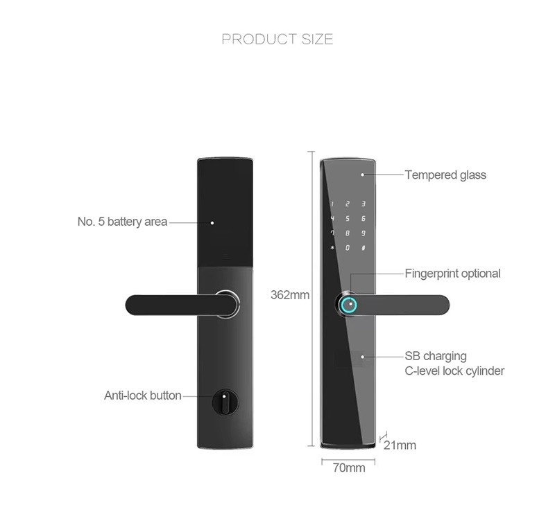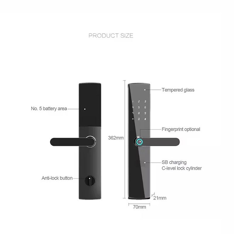 Hot Sale Smart Door Lock TT Lock APP Compatible Fingerprint Recognition Password Unlock Hotel Use for BLE 12-Month Battery