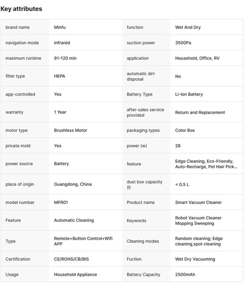 Intelligent Infrared Navigation Wet And Dry Dual Use Mop Automatic Vacuum Cleaner