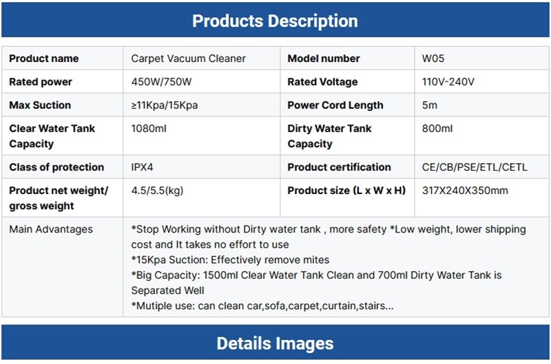 Portable Household Electric Vacuum Cleaner With Removable Water Tank Cyclone Wet Dry Function for Carpet & Sofa Cleaning