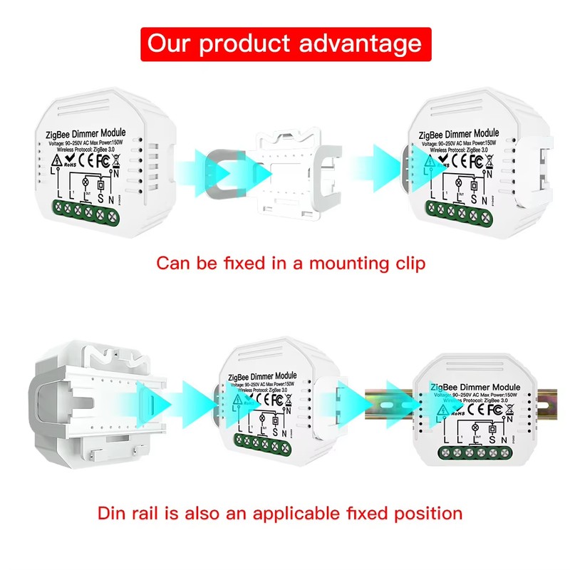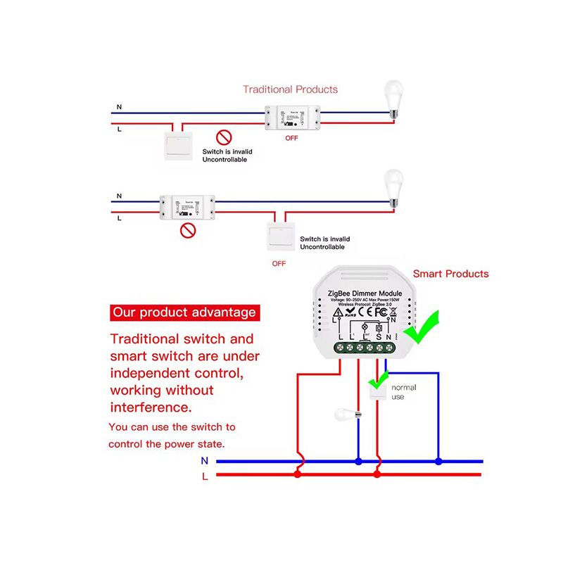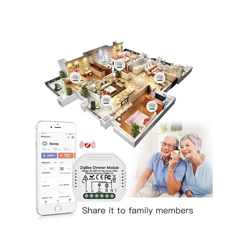 SCR Dimming Controller Two Channels Hidden Dimming ZigBee Switch 2 Way with Smart Life APP Control