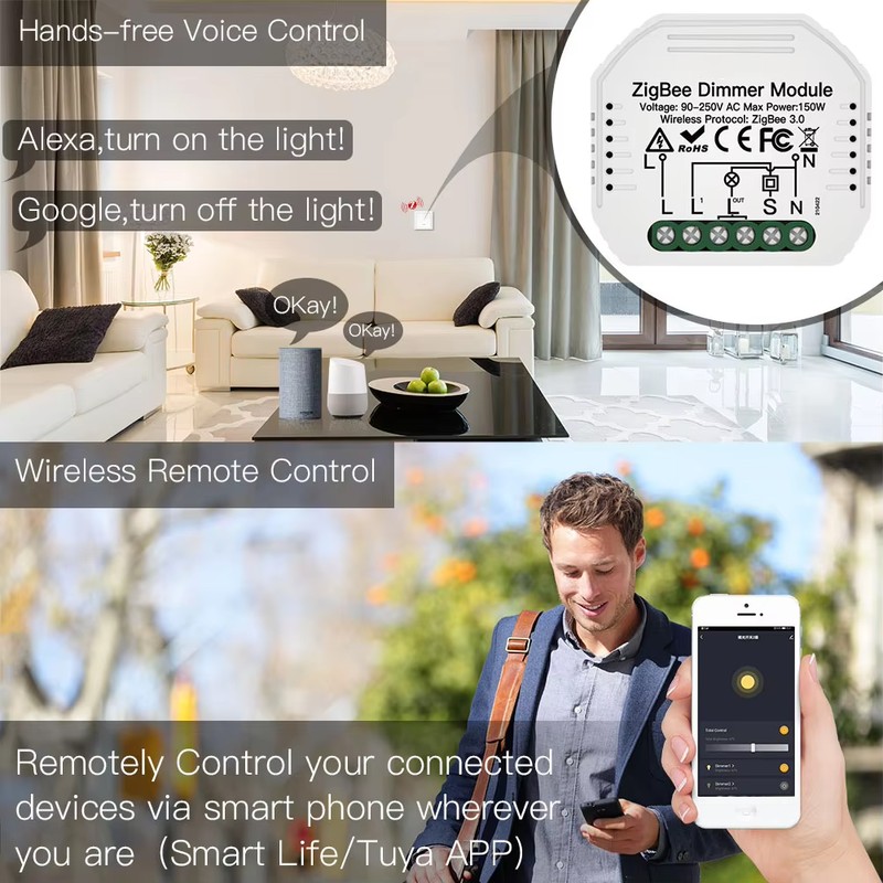 Control with App (Tuya App): Use your phone to control the smart devices from anywhere.