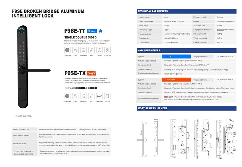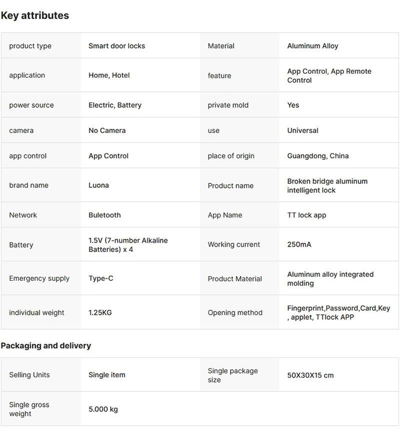 Smart Digital BLE Aluminum Alloy Smart Lock Fingerprint Recognition Password Unlock IC Card Access TT Lock Mobile Phone Control