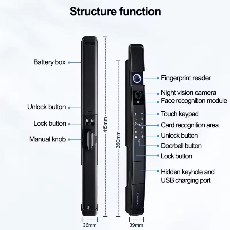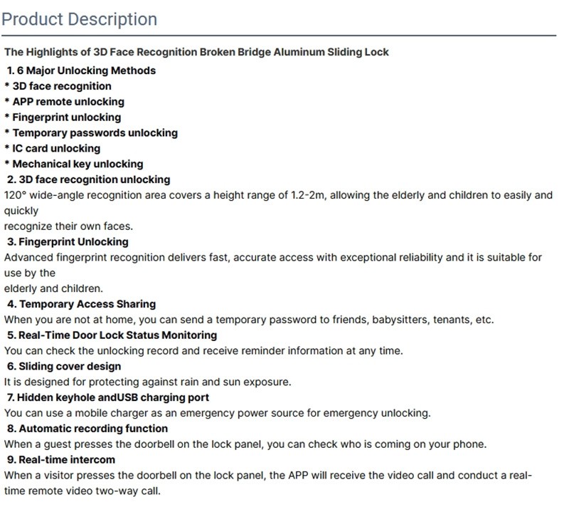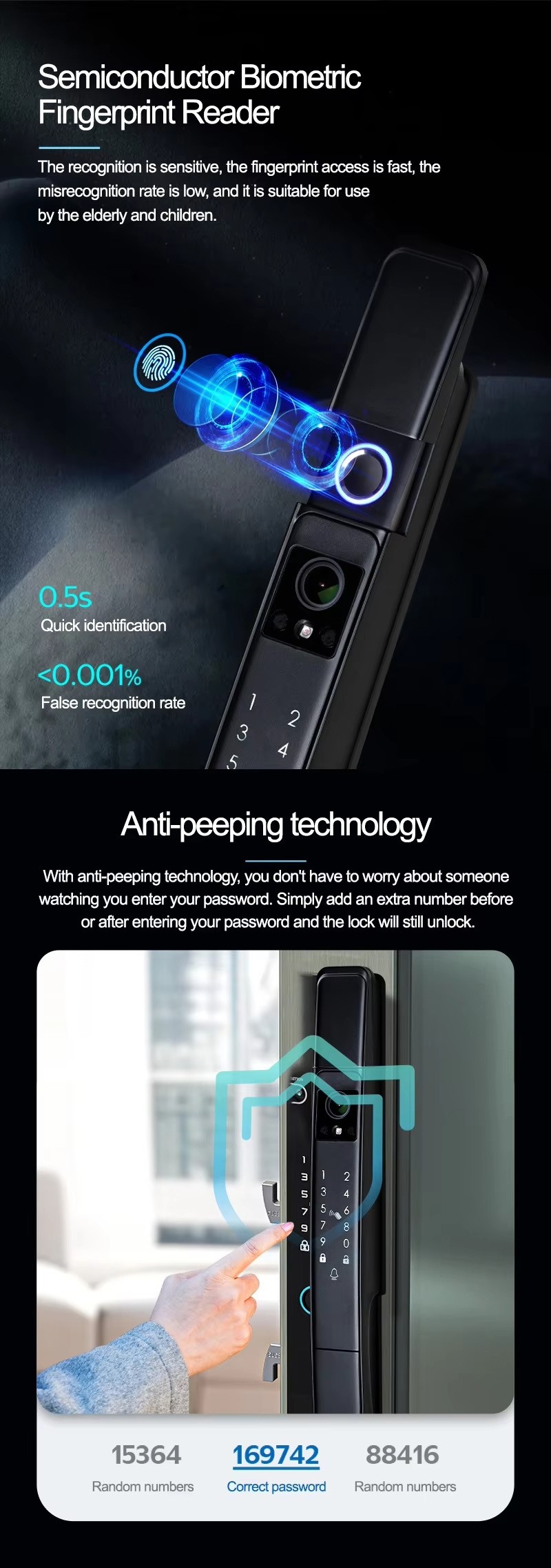 Smart Home 3D Face Recognition Broken Bridge Aluminum Sliding Lock Anti-Theft App Control Fingerprint Unlock Smart Lock