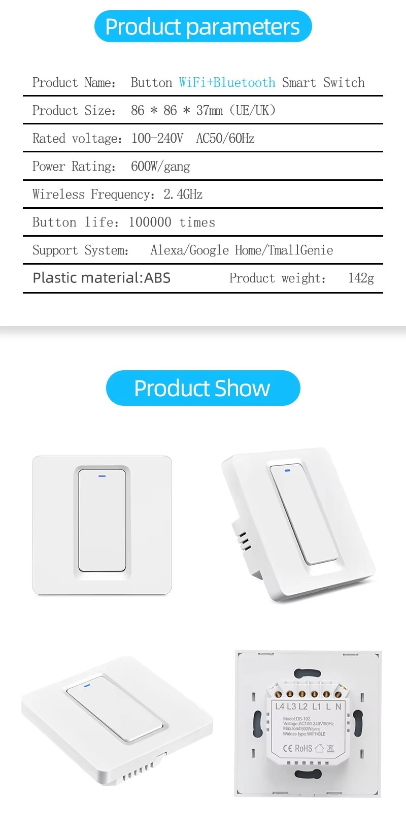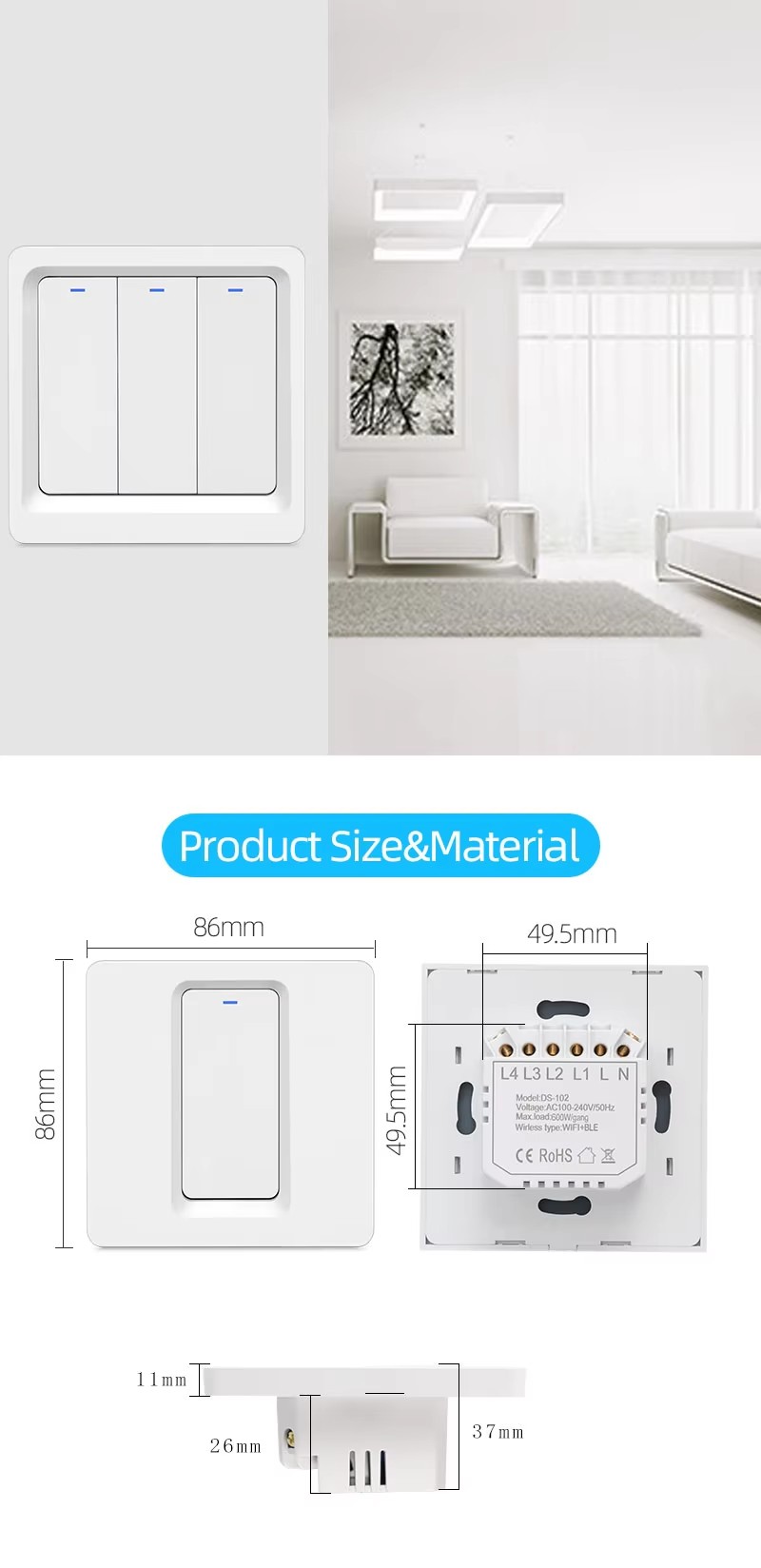 RTOS System: Supports Tuya ecosystem devices, including lights, switches, sockets, curtains, ACs, thermostats, and more.
