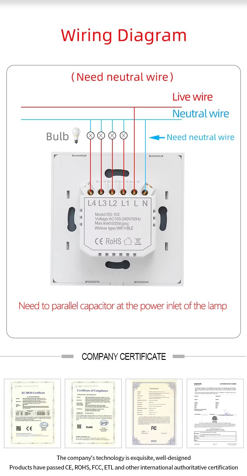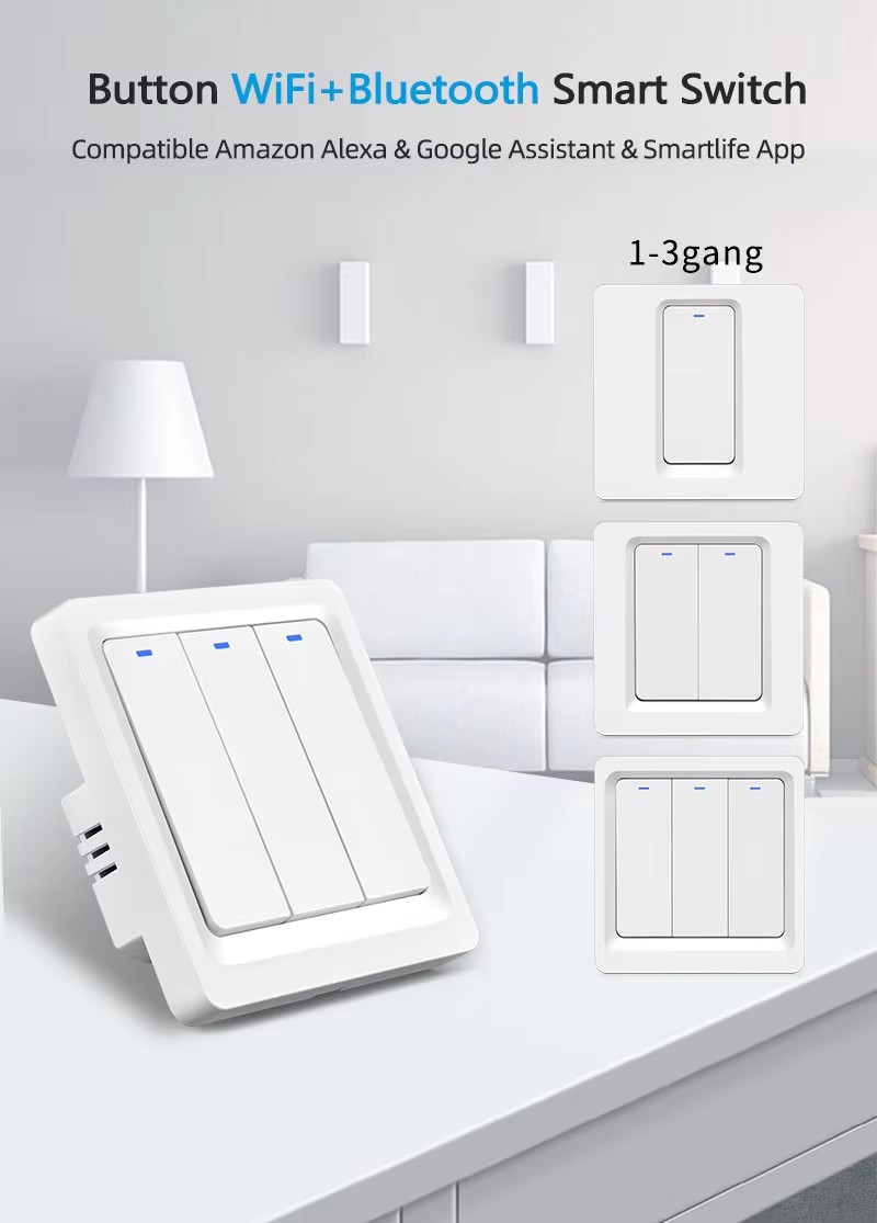 Smart Home Wall Switch 1/2/3 Gang Wireless Zigbee Button Switch for Smart Home System