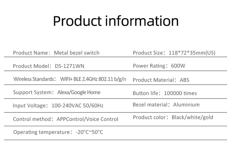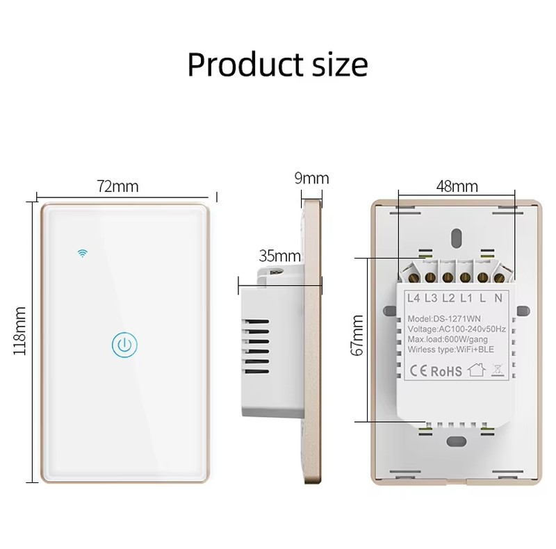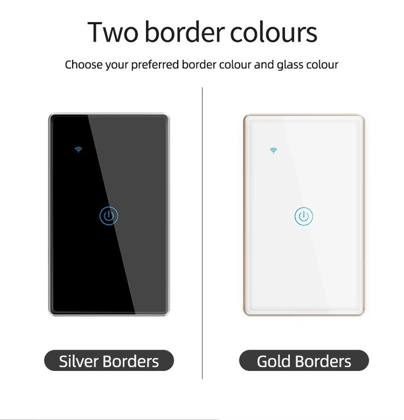 Touch Wall Switch Tuya Smart Home Wifi Switch US & EU Standard with Sliver and Gold Color Metal Bezel with Wifi /zigbee Version