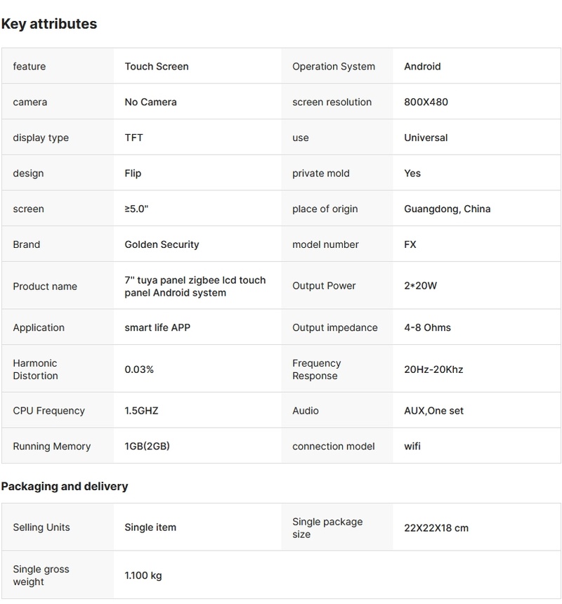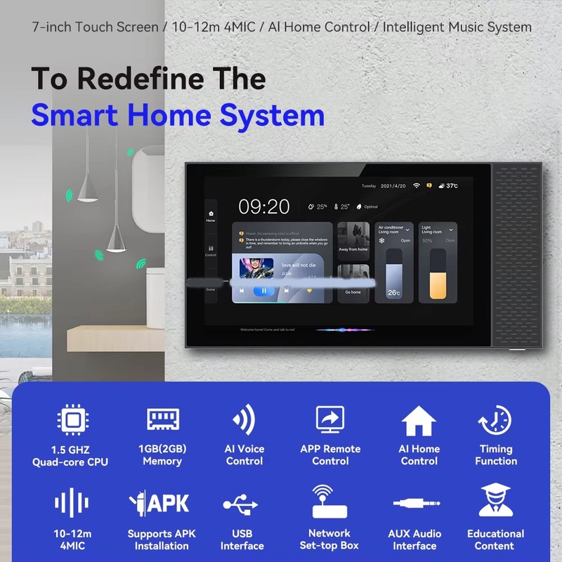 Tuya 7'' Touchscreen Zigbee Hub Android System IoT Gateway with Embedded Smart Home Security Zigbee Lcd Panel
