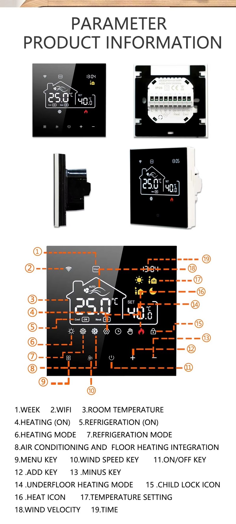 Tuya Intelligent WiFi HVAC Thermostat Integrated Air Conditioning Floor Heating 2 in 1 Central Control Panel for Smart Home
