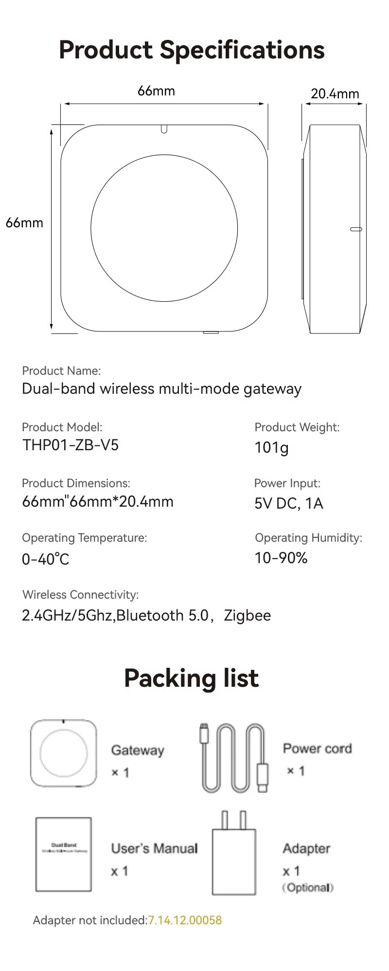 Tuya Mini Dual-band Zigbee 3.0 BLE Smart Gateway Hub with Voice Control for Home Long Range