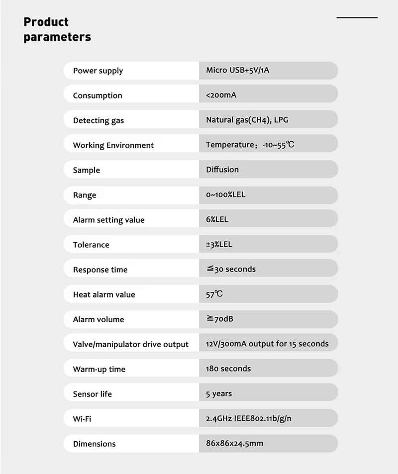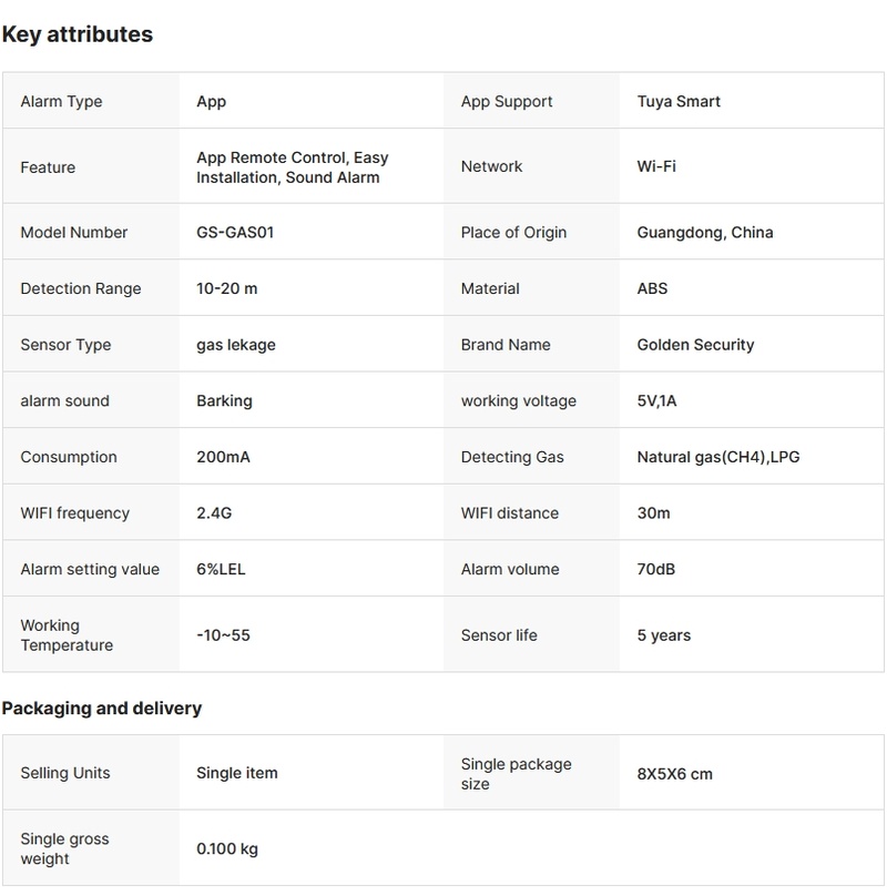Tuya Protocol Wireless Smart Sensor Wifi Detector De Gas Natural on Smart Life App Control