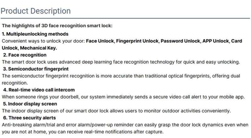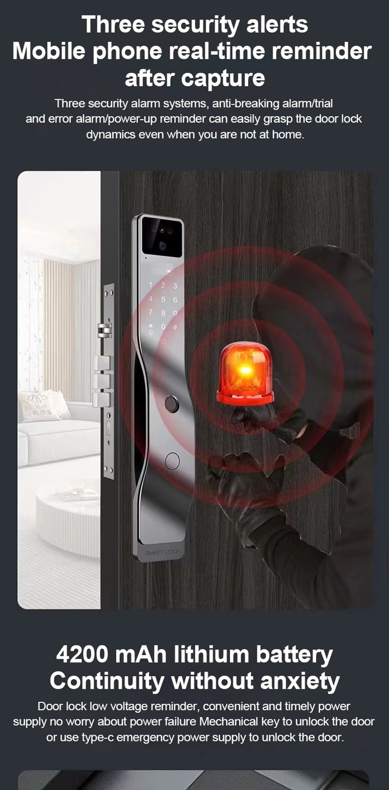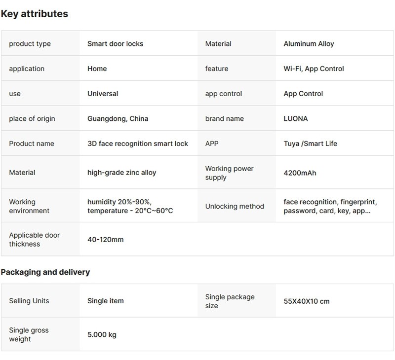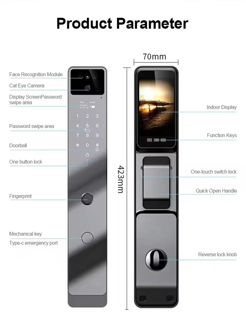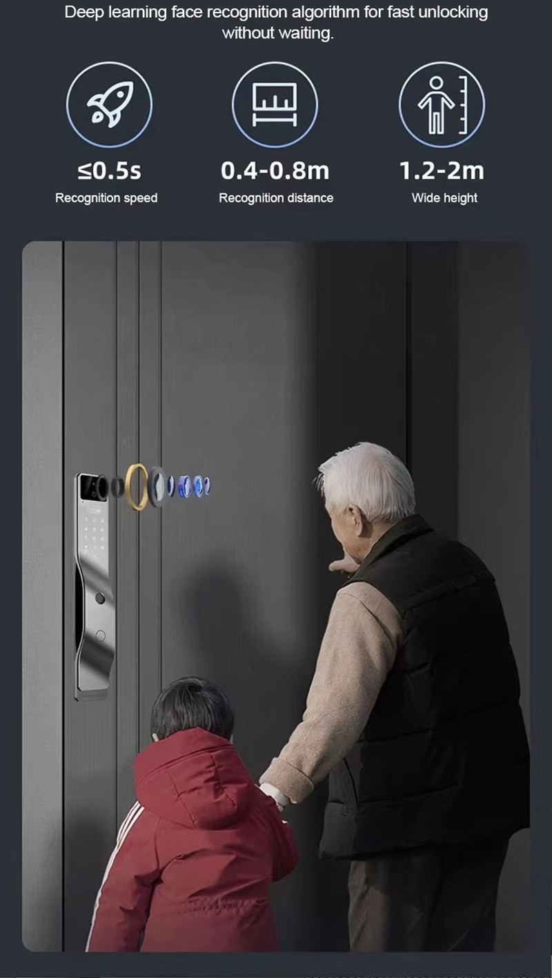 Tuya Smart Home WiFi 3D Face Recognition Aluminum Smart Door Lock Fingerprint Card Password Unlock APP Remote Control