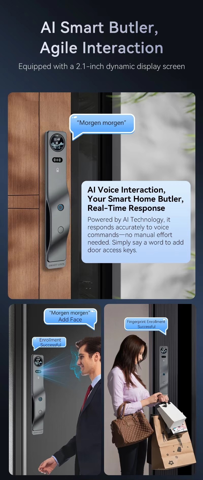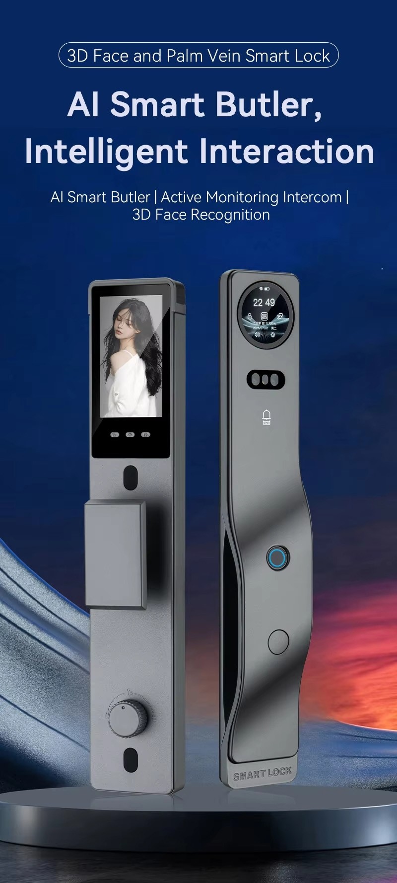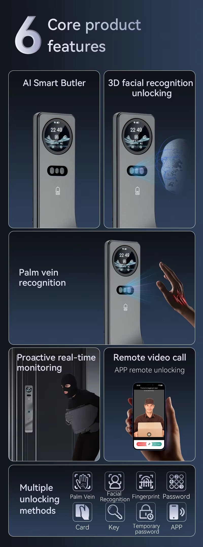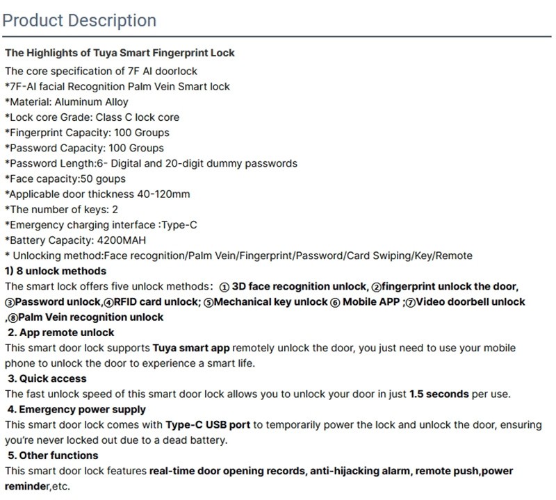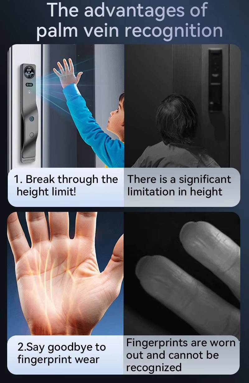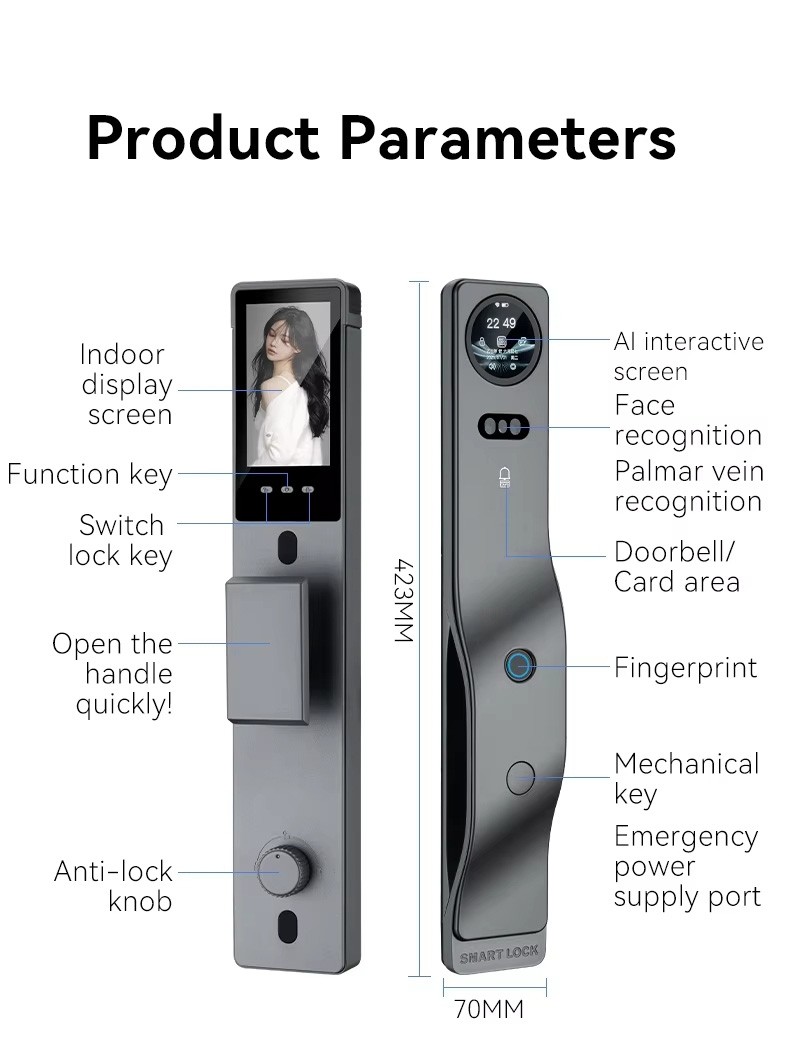 Tuya Smart Life AI Face Recognition Palm Vein Recognition Fingerprint Video Intercom Smart Door Lock with Built in Camera