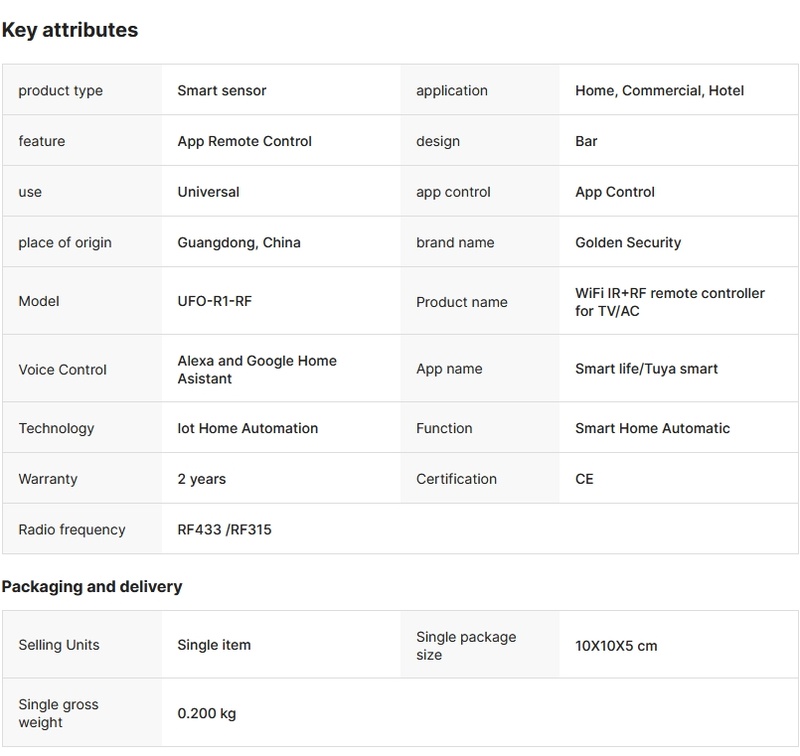 Tuya WiFi UFO-R1-RF Universal IR+RF Controller for TV/AC Smart Home IoT Home Automation Infrared Controller