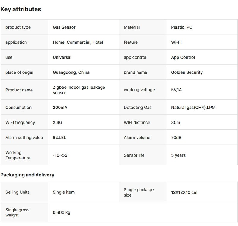 Tuya Zigbee Smart OLED Display Natural Gas Sensor Smart Gas Alarm Detector with Smart Life App Support