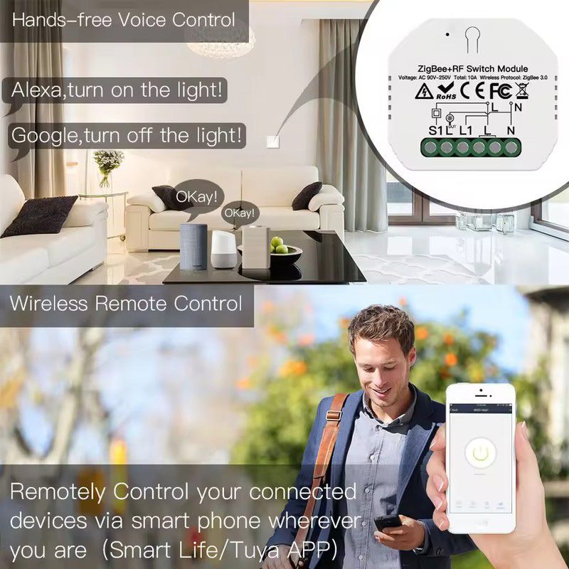 Wifi Smart Mini Hidden Switch Module Working with Alexa Voice Control Tuya APP or Smart Life App