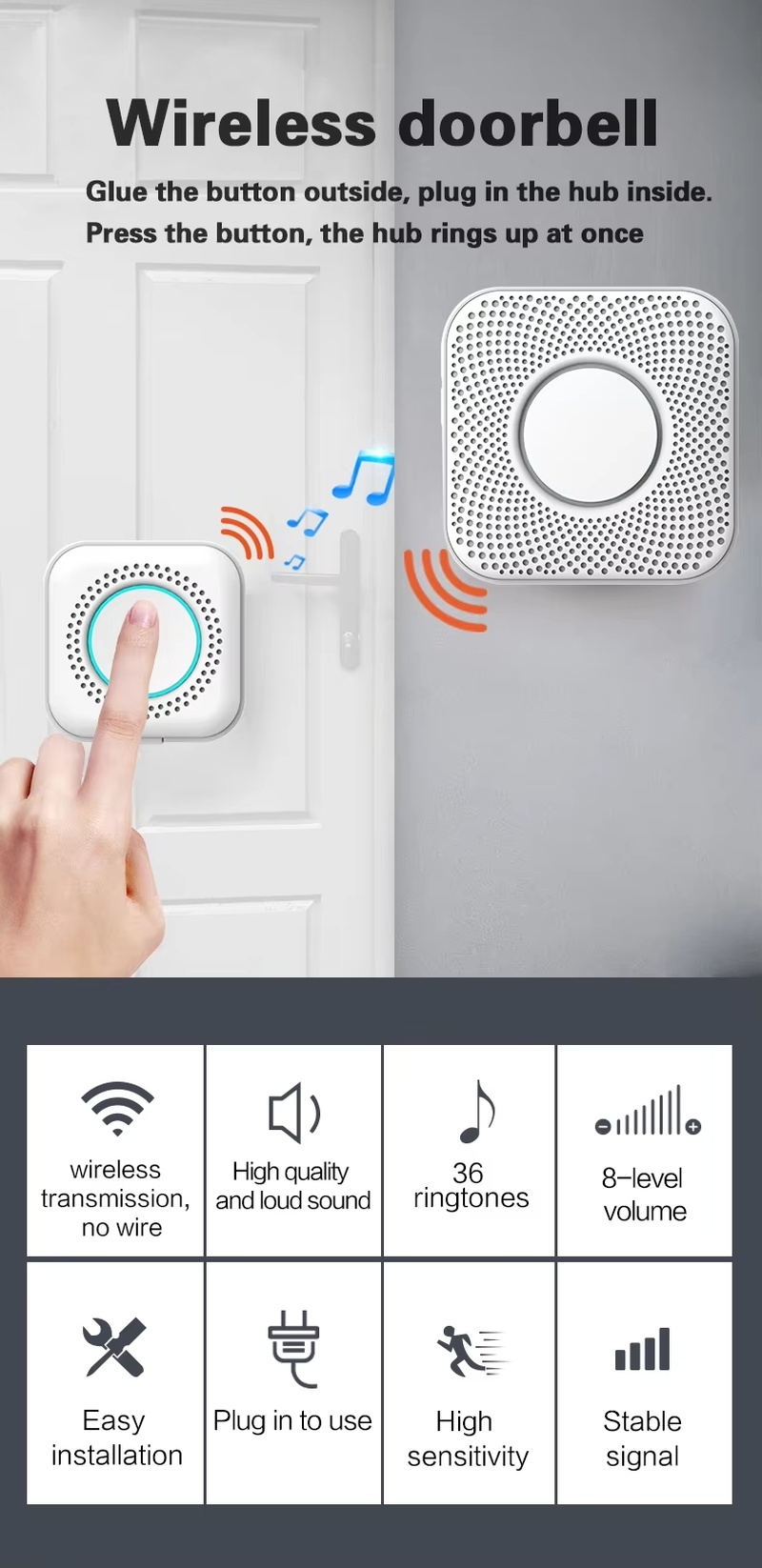 Wireless Doorbell EU US Plug Smart Door Bell Battery 110V-220V