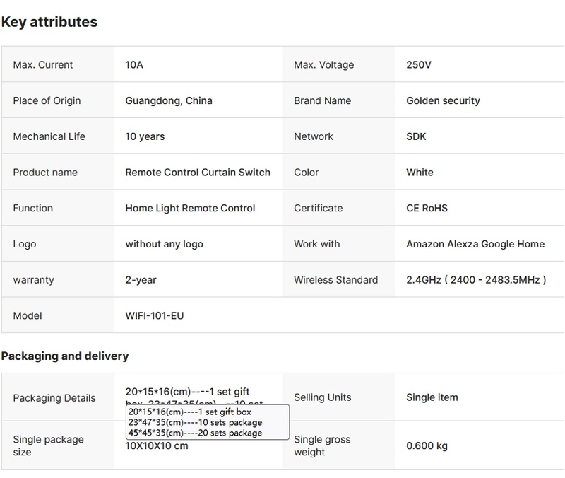 Wireless Remote Control Curtain Switch Based on Wifi Network Tuya Smart Life Mobile APP